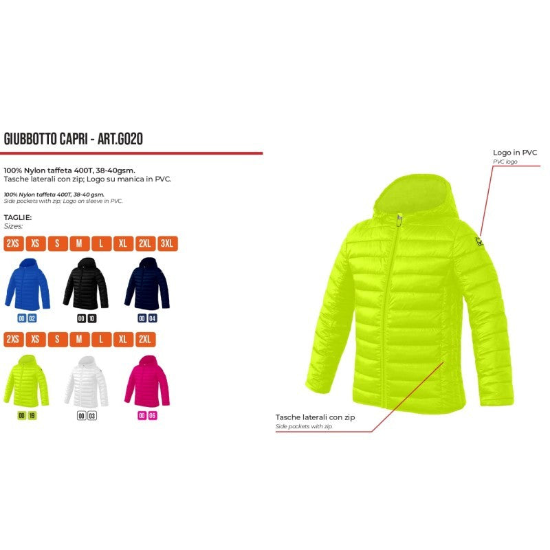 Giubbotto Givova Capri G020 Piumino con Cappuccio Unisex Giallo Fluo G0200019