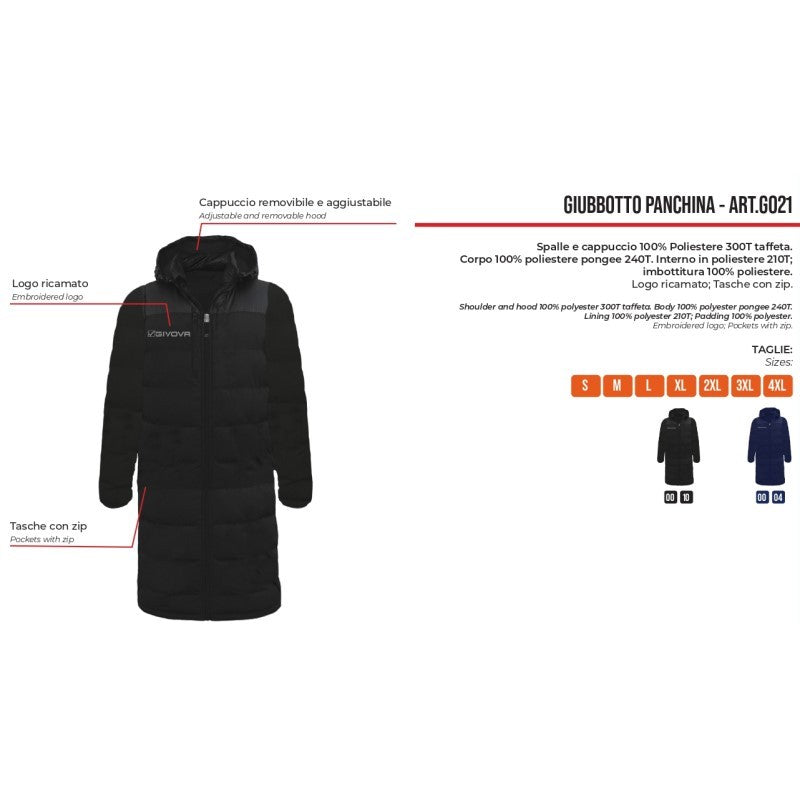 Giubbotto Lungo Givova Panchina G021 Unisex Nero G0210010