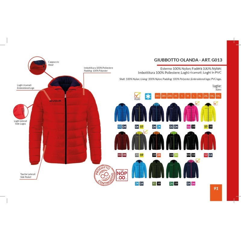 Giubbotto Givova Olanda G013 Piumino Adulto Unisex Rosso Blu G0131204
