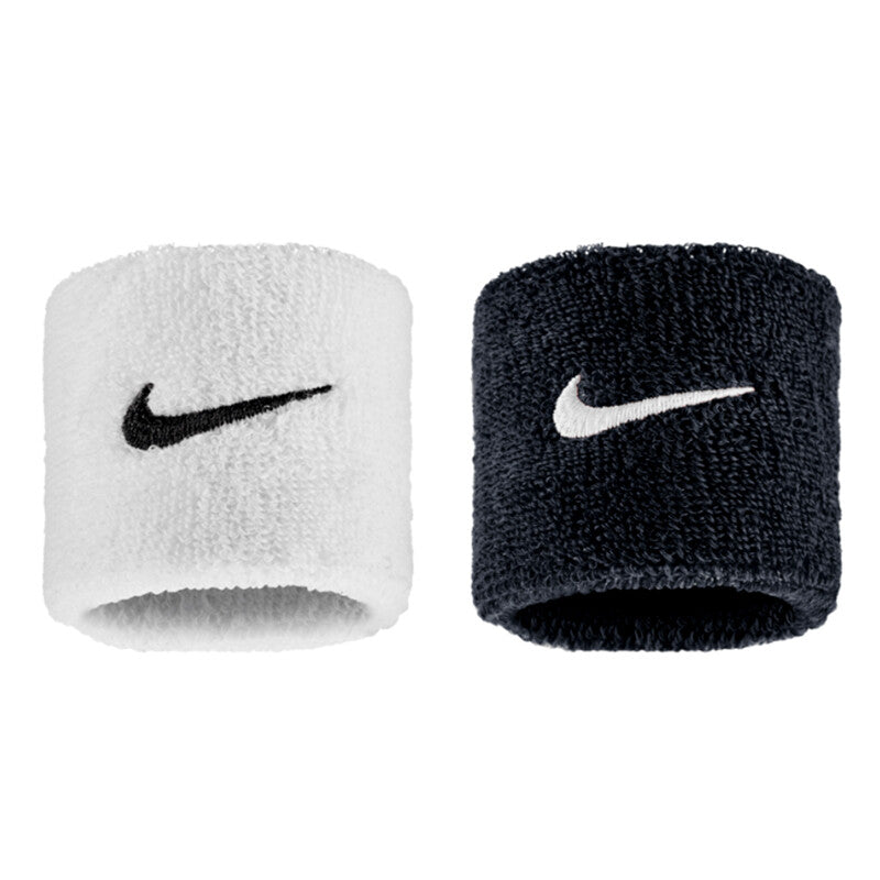 Coppia di Polsini Alti Nike Swoosh Tergisudore Bianco Nero Fitness Tennis Basket N1012406036